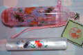 12ミリ丸×長さ60ミリ、材質は白いポリエステル、金魚の絵が入っています。