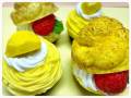 シュークリームは、朱肉のネジ式のフタ部分にいちごと生クリームのシュークリーム。