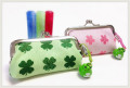 印鑑のカラーはレッド・ブルー・グリーンの3色、がま口ケースはさくらピンク・四ツ葉グリーンの2色♪